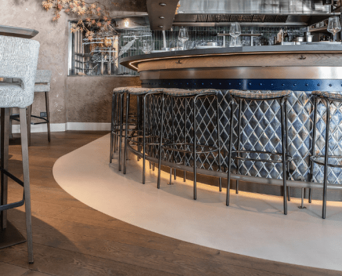 In een bedrijfskantine gelden verschillende eisen voor de vloerafwerking in de keuken en in het zitgedeelte. In de keuken moet de vloer voldoen aan de HACCP eisen, waaronder vloeistofdicht en antislip, en bestand zijn tegen vet en intensief schoonmaakwerk om veiligheid en hygiëne te garanderen. Het zitgedeelte vraagt om een comfortabele, onderhoudsvriendelijke vloer die geluid dempt en een warme, uitnodigende uitstraling heeft. Beide ruimtes vereisen een slijtvaste vloer die geschikt is voor intensief gebruik. Deze combinatie is heeft geresulteerd in de twee verschillende vloerafwerkingen in de kantine van Remia in Den Dolder. Zo wordt zowel praktisch als esthetisch voldaan aan de eisen van een moderne bedrijfskantine.